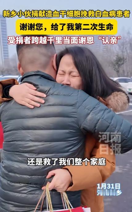44岁的北京市民雷女士在1月31日专程奔赴河南新乡,与六年前为自己捐献造血干细胞的恩人杨增超相见。 2019 年的夏天,彼时 38 岁的雷女士还是北京一个普通家庭里幸福的妻子和母亲,上有年迈的父母需要照料,下有两个年幼的女儿绕膝承欢,和丈夫经营着一个不算富裕却满是温馨的小家,日子平淡又安稳。 可这份安稳,被一张急性淋巴细胞白血病的诊断书彻底击碎,拿到诊断书的那一刻,雷女士觉得天旋地转,怎么也不敢相信这样的厄运会落在自己身上。 作为家里的独生女,她是父母的依靠,是孩子的天,这场突如其来的大病,让整个家庭瞬间陷入了绝望的阴霾。 病情发展得很快,医生明确表示,想要活下去,唯有进行造血干细胞移植,可现实的难题接踵而至。 雷女士的父母年事已高,两个女儿尚且年幼,直系亲属的配型全部失败,这也就意味着,她的生命希望,只能寄托在茫茫人海的中华骨髓库里。 那一个多月的日子,雷女士和家人在煎熬中度过,每天都在期盼着来自骨髓库的消息,每一次手机响起,都揪着一家人的心,他们知道,那是唯一的生门。 终于,好消息传来,骨髓库找到了一位与雷女士完全相合的志愿者,而且对方明确表示愿意捐献。 这位志愿者,就是当时 32 岁、家住河南新乡的杨增超。 彼时的杨增超是中石化华北石油公司的一名员工,常年驻守在内蒙古鄂尔多斯的工作现场,谁也不会想到,八年前一次偶然的无偿献血,竟成了这场生命缘分的开端。 2011 年的春天,刚参加工作不久的杨增超,在新乡市红旗区的街头献血点参与无偿献血,当时他一次性捐献了 400 毫升全血。 听现场的红十字会工作人员讲解造血干细胞捐献的知识后,得知很多血液病患者都在等待这份生命希望,他没多想,当即填写了志愿表,留下了检测样本,成为了中华骨髓库的一名志愿者。 2019 年的秋天,正在内蒙古工作的杨增超接到了红十字会的电话,得知自己与一位北京的患者配型成功,他没有丝毫犹豫,当即答应了捐献。 为了配合捐献流程,远在内蒙古的杨增超先后两次专程请假赶回河南新乡,一路奔波却没有半点怨言,甚至为了不让家人担心,他起初还瞒着家里人捐献的事,直到完成捐献后,才跟妻子坦白了这件事。 移植手术成功后,雷女士迎来了漫长又艰难的康复期,她在层流病房里一住就是 47 天,期间经历了低烧、口腔溃疡、肠胃排异等一系列反应,吃不下饭、睡不着觉是常事。 可每当撑不下去的时候,她就会想起那个素未谋面的新乡志愿者,她只从医生口中得知,恩人是1989年出生,在石油系统工作,这些模糊的信息,成了她康复路上最坚定的念想。 这六年里,雷女士的生活慢慢回到了正轨,送女儿上学、陪父母散步、和丈夫经营小家,那些曾经失去的烟火气,都一一找了回来。 每年 11 月 8 日这个 “重生纪念日”,她都会发一条朋友圈,感谢那个素未谋面的恩人,也会一次次通过红十字会,表达想要见一面恩人的心愿。 终于,在 2025 年 12 月,经中华骨髓库、河南省红十字会和新乡市红十字会的多方对接,确认双方都有相见的意愿后,这场跨越六年的相见,终于被提上了日程。 1 月 31 日一早,雷女士带着丈夫和两个女儿,乘坐高铁从北京西站出发,历时3个小时抵达新乡东,除了满心的感恩,她还带来了精心准备的礼物。 其中最珍贵的,是小女儿亲手画的一幅画:画纸上,两只手紧紧相握,一颗带着光芒的 “生命种子” 从新乡飘向北京,旁边还有孩子用稚嫩的笔迹写下的 “谢谢杨叔叔,您是大英雄”。 而杨增超,也早早带着妻子等在了新乡东站的出站口,手里还拎着新乡的特产柿饼和封丘石榴,见到雷女士一家人,他脸上的笑容格外憨厚。 相拥过后,两家人的距离瞬间被拉近,孩子们叽叽喳喳地围着杨增超,说着妈妈这些年的故事,雷女士也终于有机会,亲口跟杨增超说着这些年的感谢。 她这才知道,杨增超这些年一直坚持做公益,累计无偿献血已经达到 2800 毫升,手里攒了 12 本献血证,2022 年还签下了遗体和人体器官捐献志愿书,把善意融进了日常的生活里。 新春的脚步越来越近,这场跨越千里、延续六年的相见,让这个冬天变得格外温暖,雷女士的千里奔赴,是对一份善意最真挚的回应。 而杨增超的义无反顾,是人间最朴素也最珍贵的大爱。这份跨越千里的血脉亲情,在岁月里慢慢延续,让善意和希望,永远传递下去。 对于这件事,您有什么想说的吗?欢迎评论区留言讨论。 信源:河南日报2026-02-01——《新乡小伙捐献造血干细胞挽救白血病患者谢谢您,给了我第二次生命受捐者跨越千里当面谢恩"认亲"》