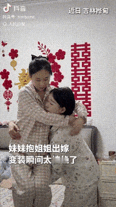 你抱我长大,我抱你出嫁!吉林桦甸,姐姐出嫁大好日子,妹妹一身靓丽军装,抱着姐姐出门,给足姐姐底气,这份姐妹情深暖入人心。 这对姐妹从小到大感情一直很好,小时候,姐姐经常抱着妹妹去玩,妹妹想着在姐姐出嫁这天给姐姐一个惊喜。 妹妹穿着曾经服兵役的军装,想以自己最庄重的姿态送姐姐出门,说:“姐姐,小时候你抱我,现在换我抱你了。” 这一变装送嫁视频暖哭了全网,姐妹情深打动人心,妹妹军装送嫁,给足了姐姐底气,给姐姐撑腰,换种方式告诉姐姐,就算出嫁了,我依旧你最坚强的后盾,也是对姐姐另类的祝福。 最让人感动和割舍不掉的就是血脉相连的亲情,朴素但无比深沉。小时候姐姐温暖的怀抱,是妹妹安心的避风港;如今妹妹身着军装,是姐姐娘家的靠山,这不仅是力量的传递,更是爱的传递和延续。 妹妹一身军装抱姐姐出嫁