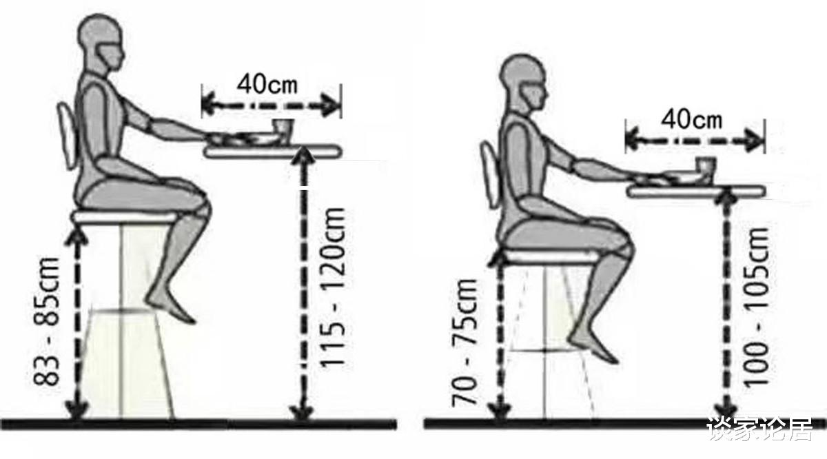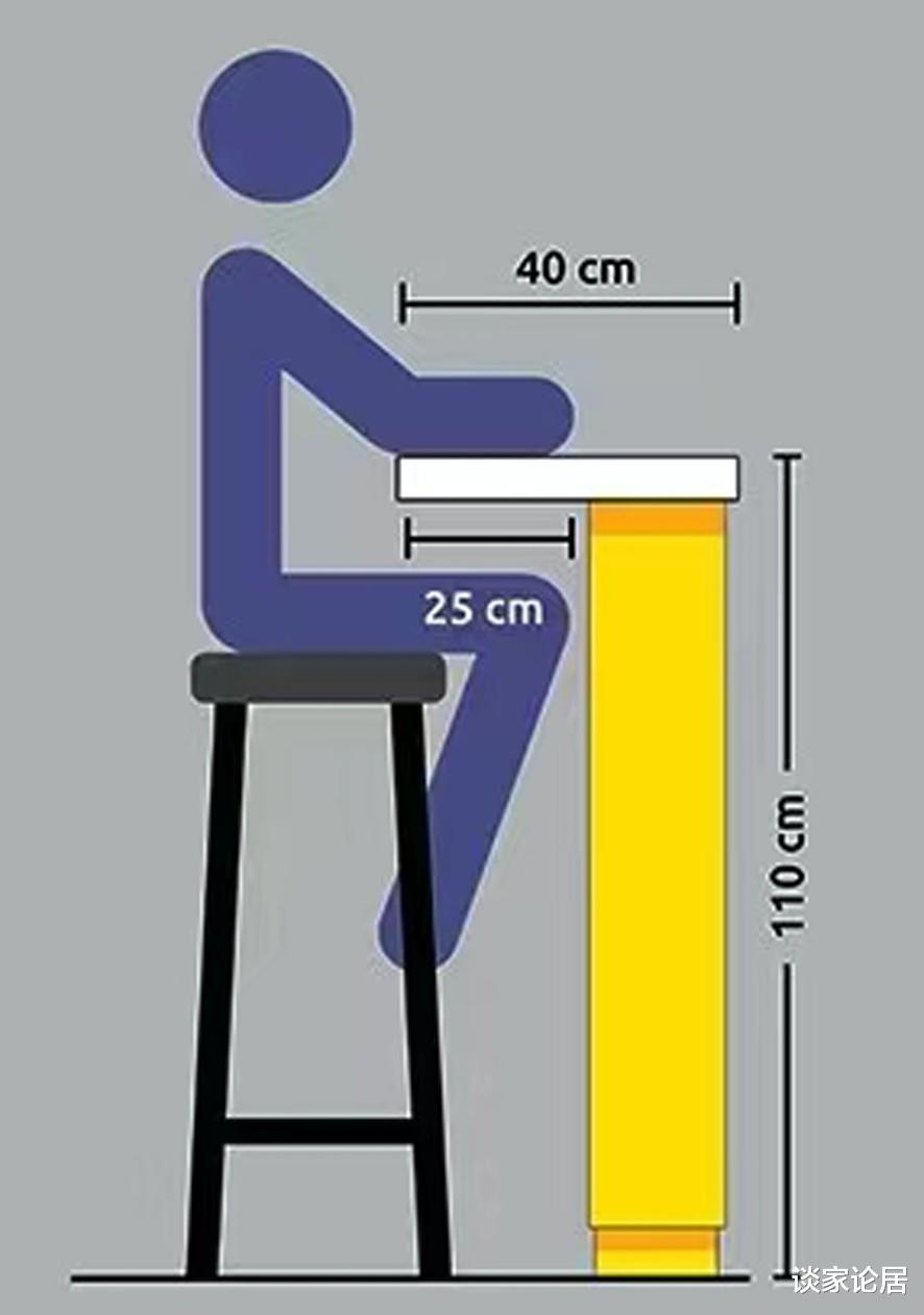 另外,吧台台面下方要至少要预留25cm以上深度,这是坐下来后给腿部安放的尺寸,这样舒适性才会好。