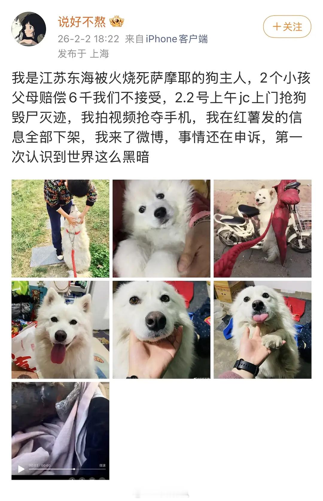 看热搜了吗,两男孩玩火烧死一只萨摩耶。。。养了7年的萨摩,在笼子里好好呆着的,两个男孩直接把烟花扔进狗笼子里把狗狗活活烧死了