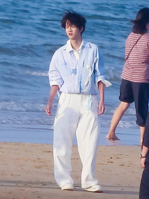 李煜东海边路透谁敢信这个小男孩才十三岁,帅的好权威吧!