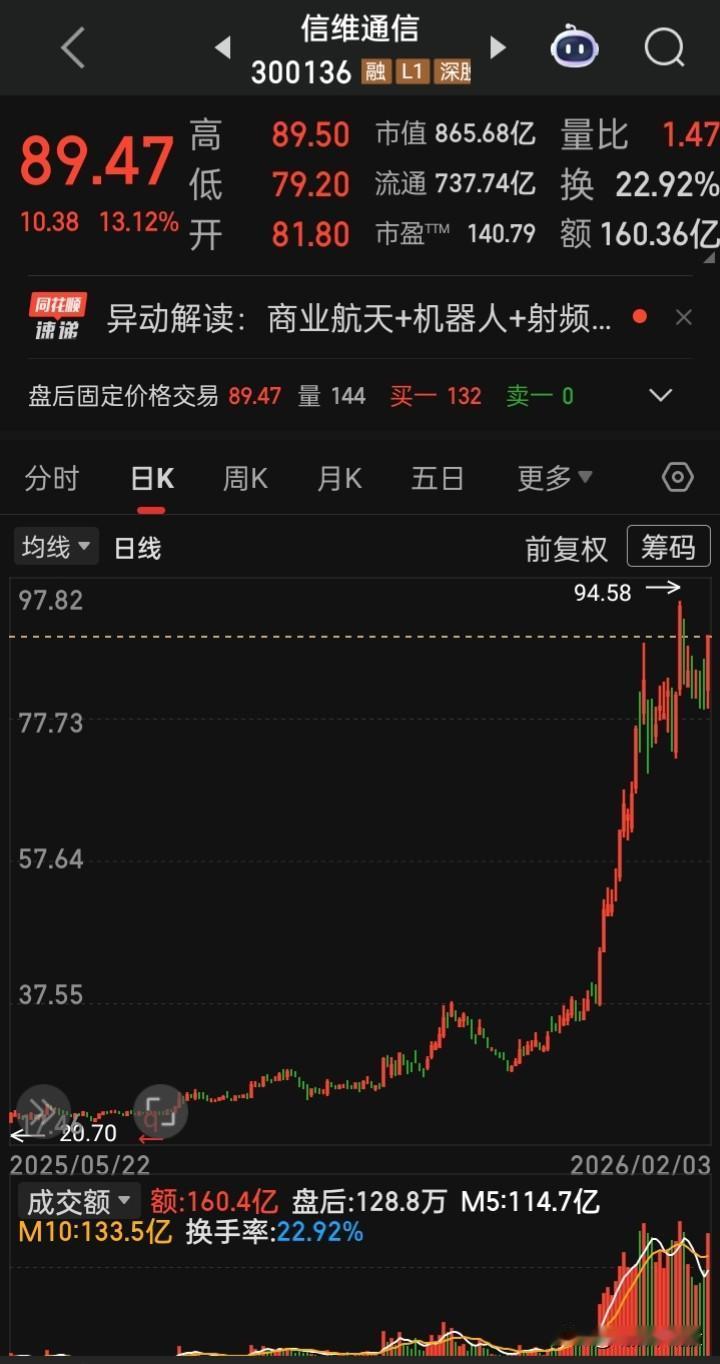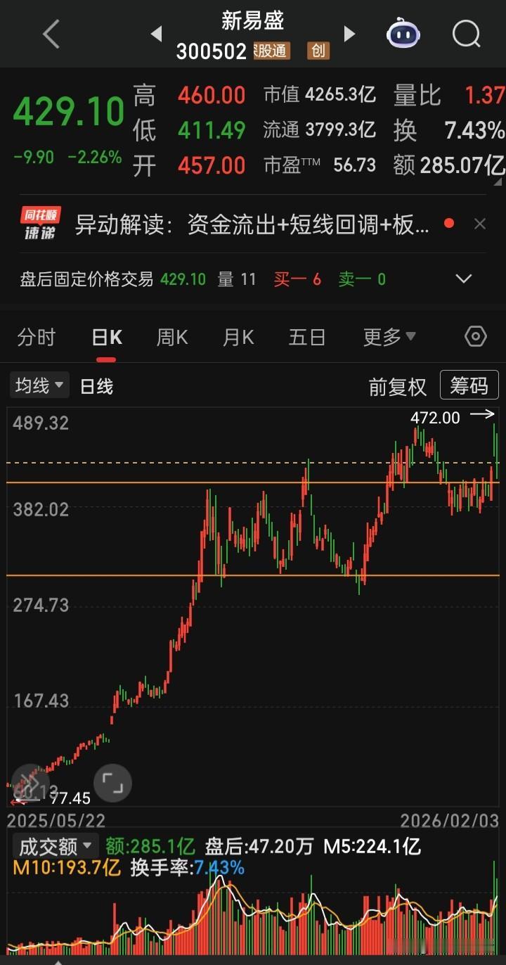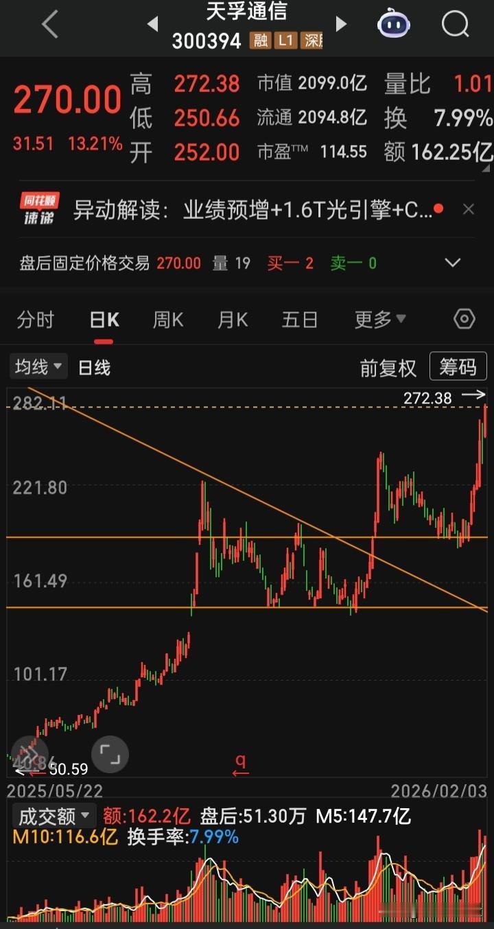 【每日观察2026.02.03】在总成交额25656亿比上个交易日缩量410亿、上涨4856家下跌532家、涨停83家跌停22家的情况下,谁在成交额前十 新易盛 285.07亿,跌2.26% 寒纪武-U256.23亿,跌9.18% 中际旭创255.46亿,跌0.22% 紫金矿业180.74亿,涨6.01% 蓝色光标167.97亿,涨3.23% 天孚通信162.25亿,涨13.21%(创历史新高) 信维通信160.36亿,涨13.12% 利欧股份142.69亿,涨2.72% 航天发展138.72亿,涨停 特变电工130.16亿,涨3.35%