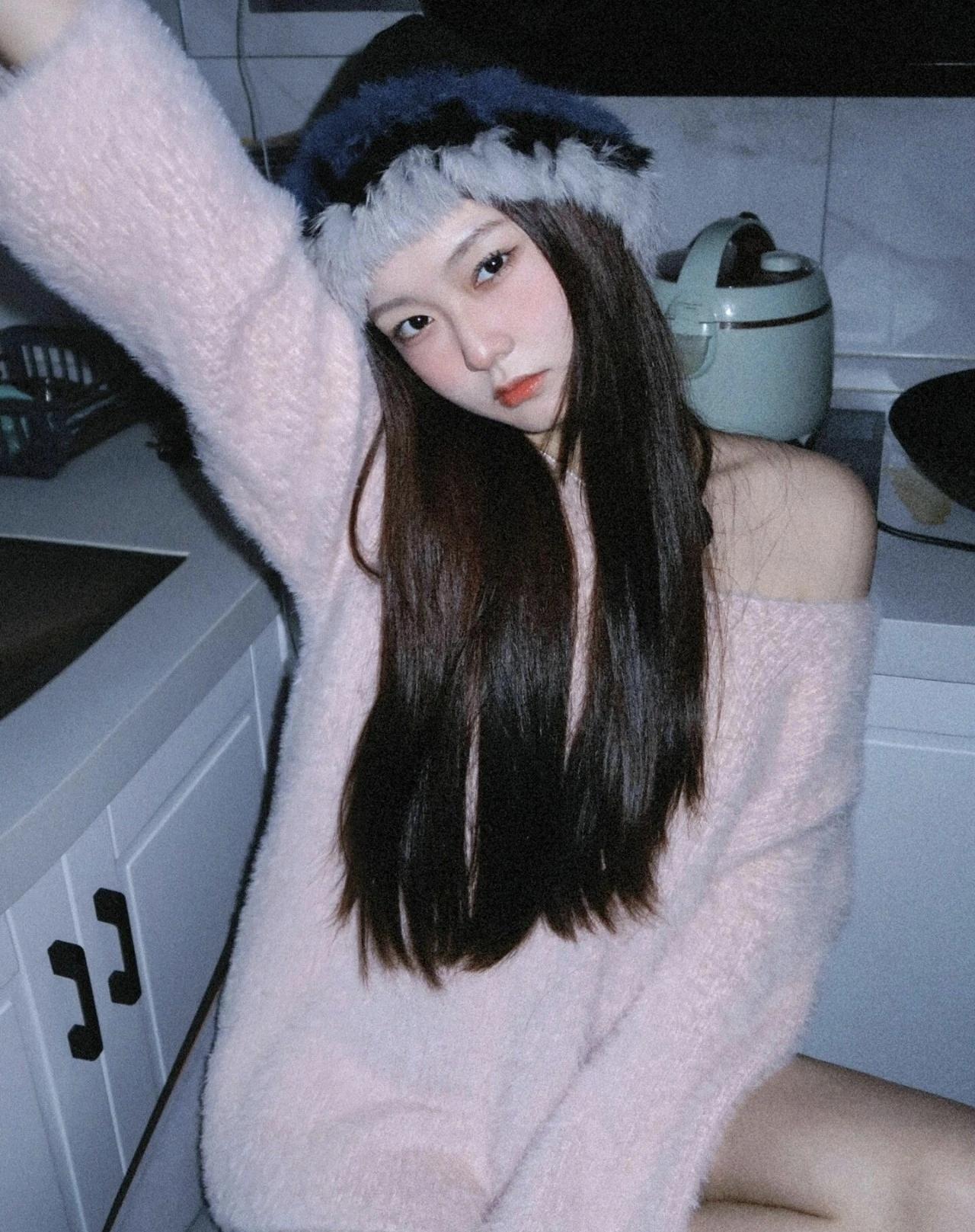 冬日暖阳下,毛绒绒的少女在厨房里慵懒地坐着,享受着慵懒的时光。