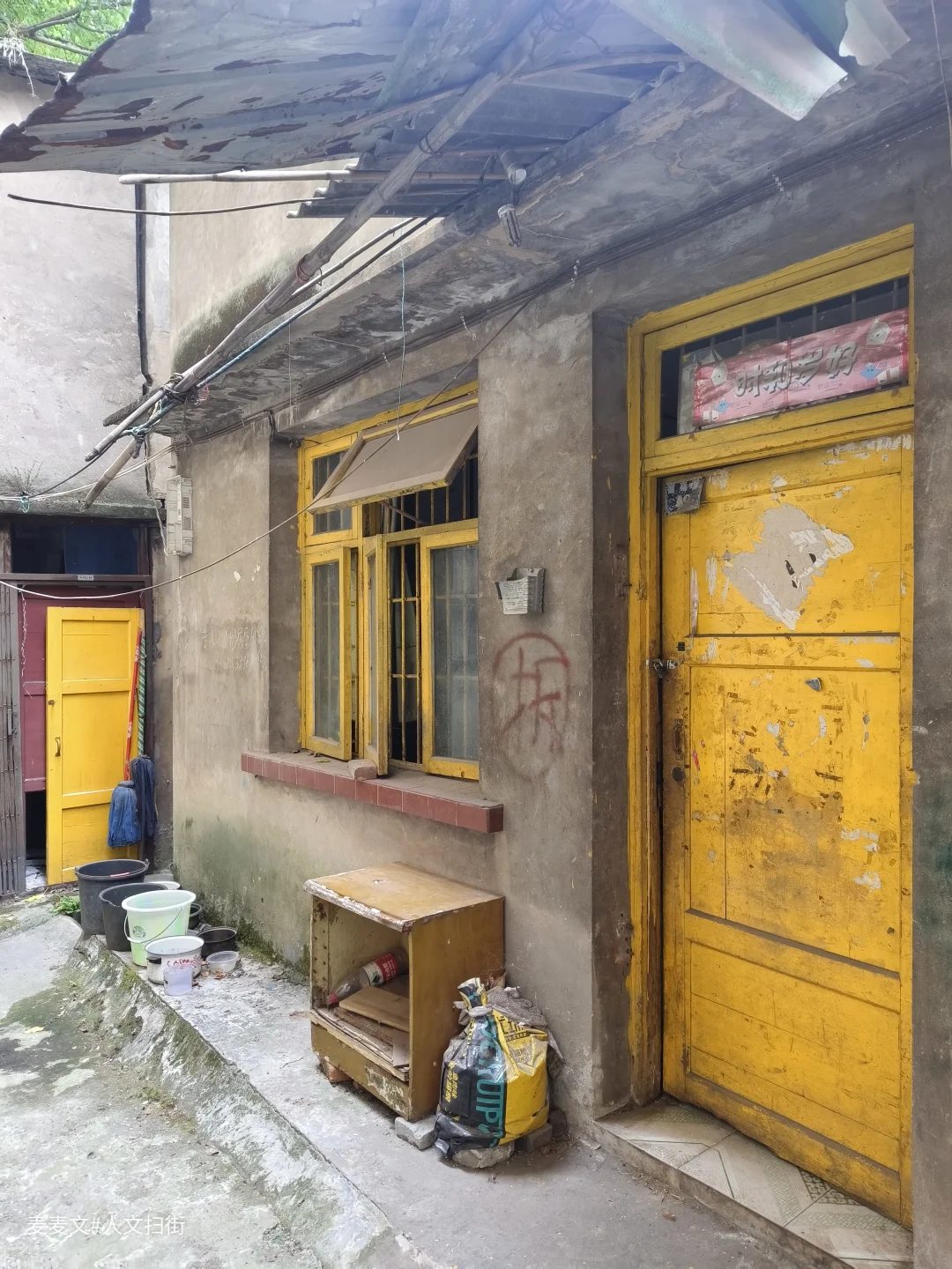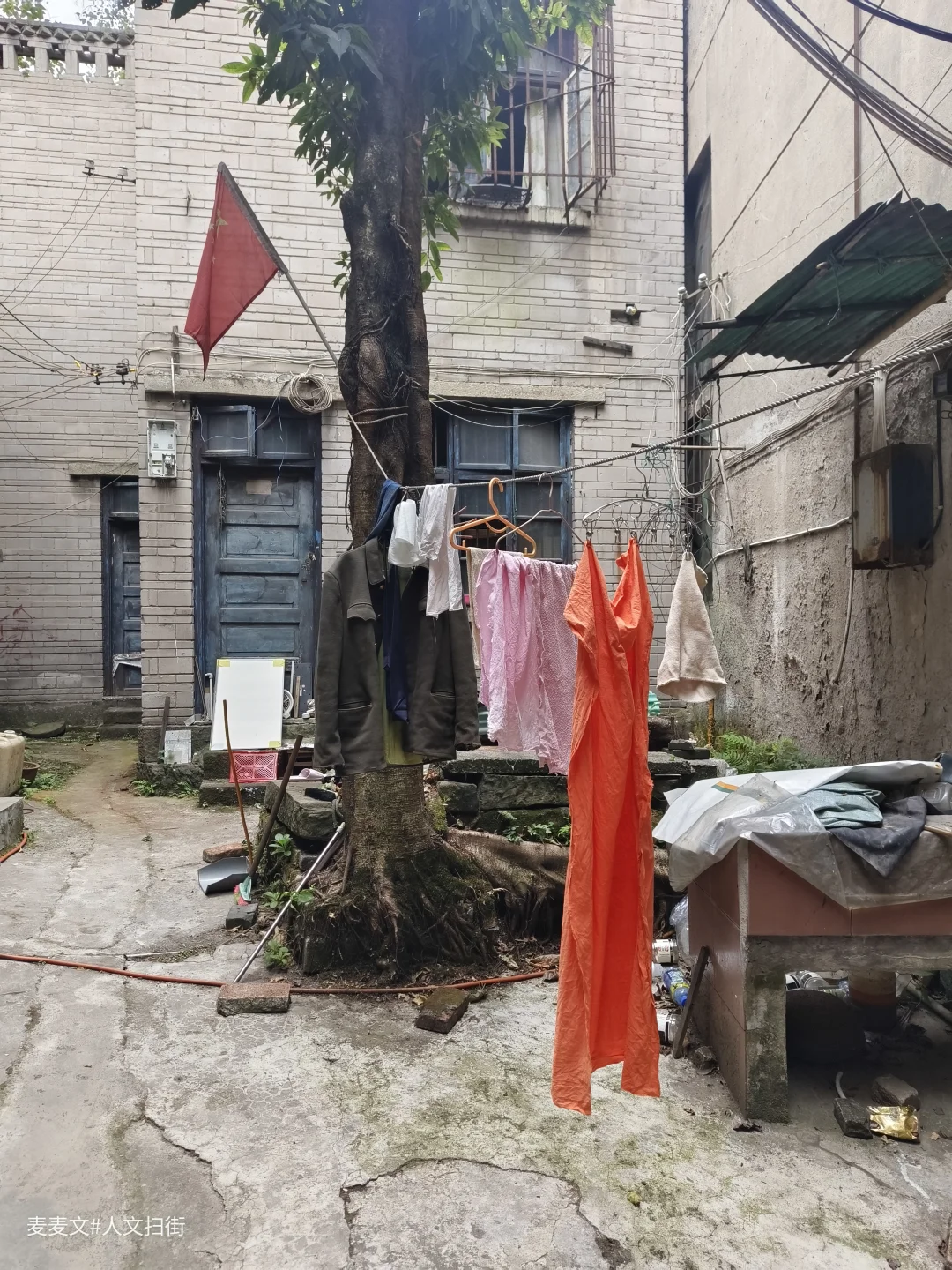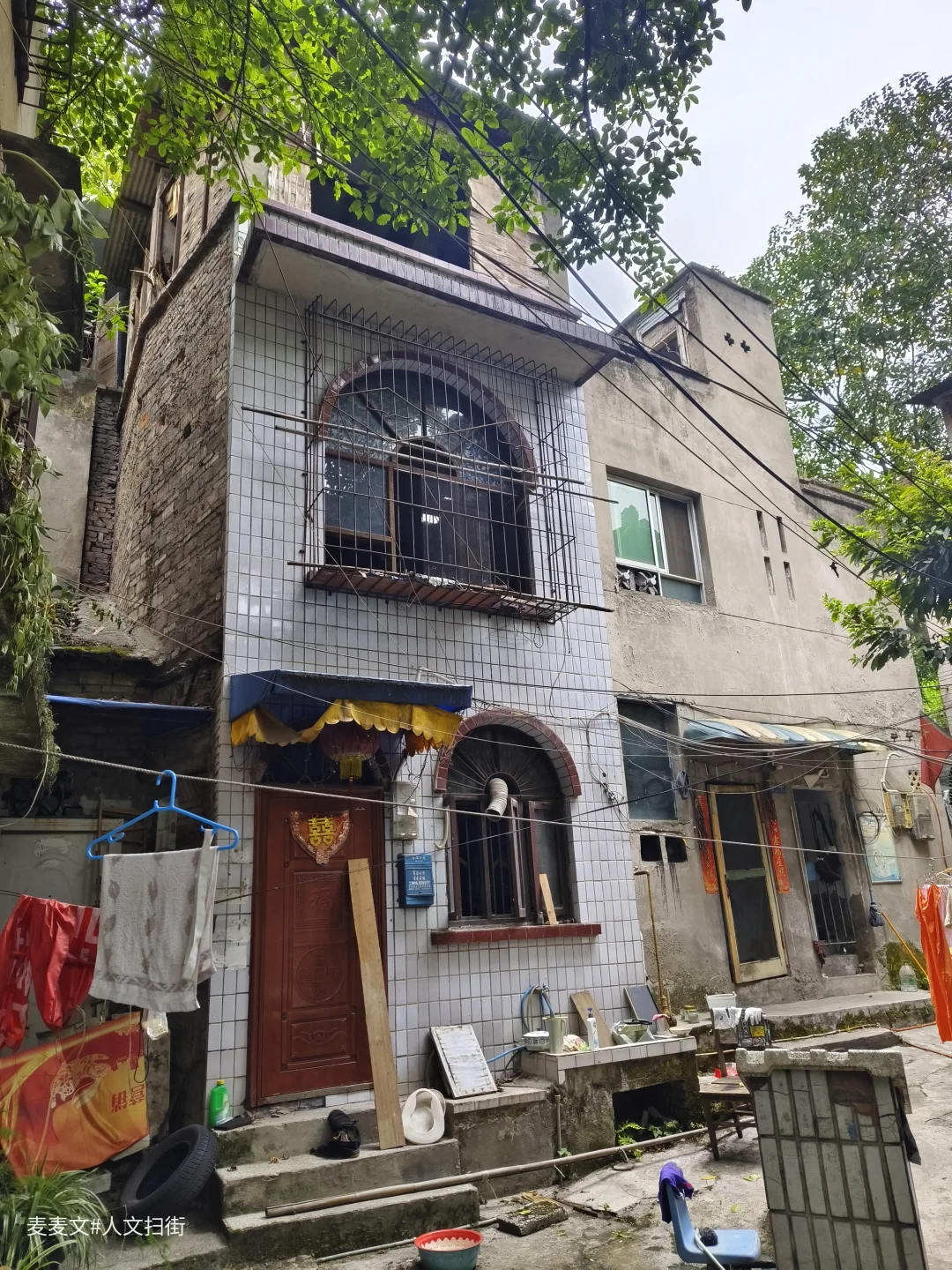 走进葡萄院,时光仿佛慢了下来。老旧的房屋,斑驳的墙壁,诉说着岁月故事。院子中间的树郁郁葱葱,见证着这里的人来人往。晾晒的衣物随风轻摆,充满生活气息。