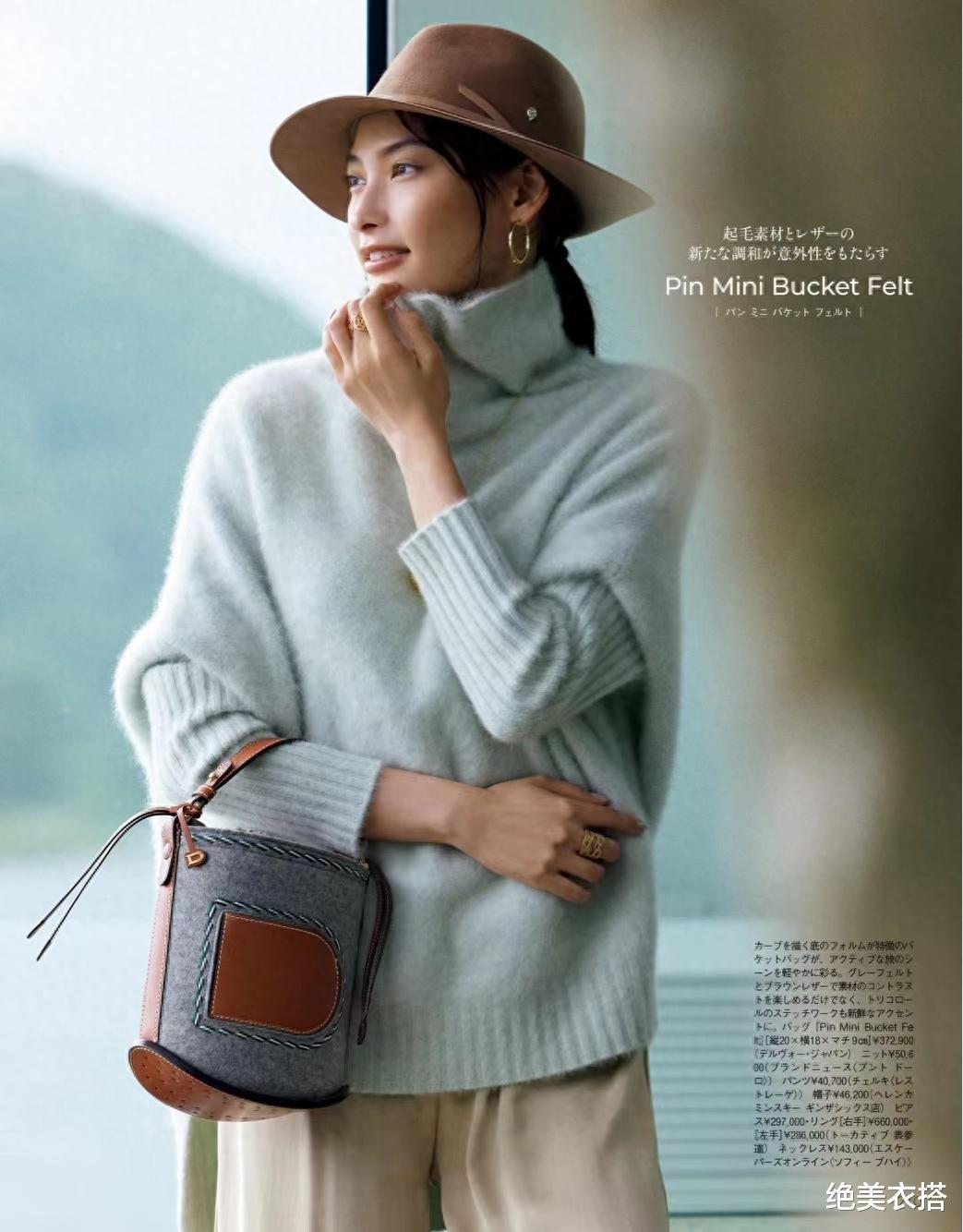以米色、驼色为代表的各类毛衣,配一条灰裤子,再用米、灰拼色披肩衔接,一套经典的灰米配穿搭,油然而生。