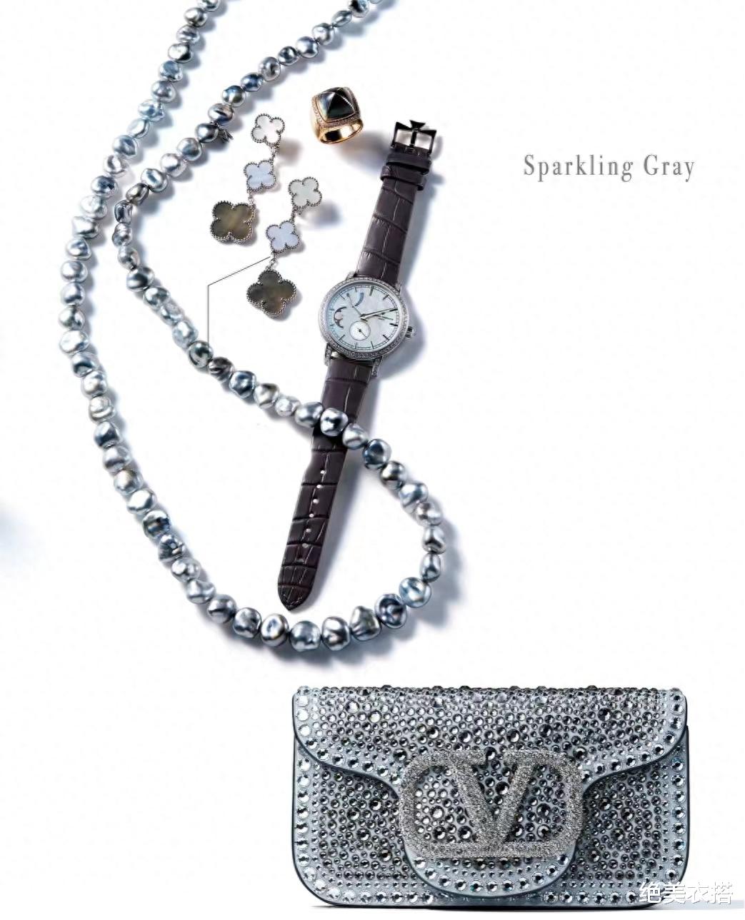 银灰亮片包包,银色项链,银色表盘,银色小饰品......作为配饰小物,在呈现闪耀灰色的流行中,已是担当主力。