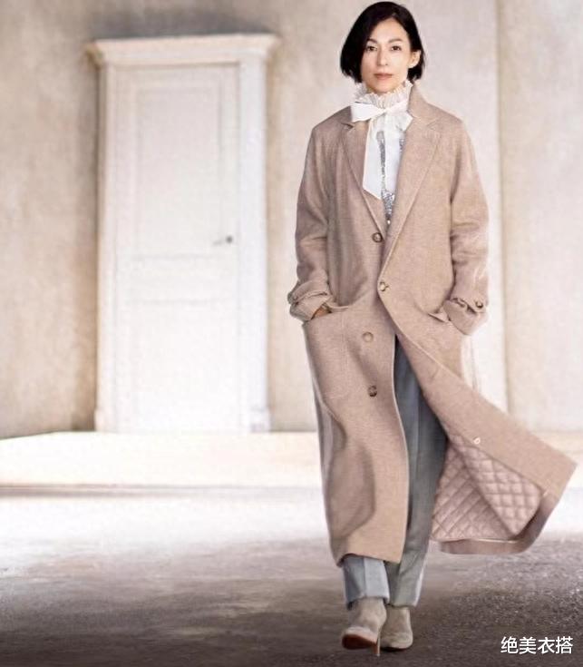 羊绒类的灰色大衣,可以中规中矩,也可以时尚另类。比之米色,它的选择余地更广。下图中的宽松休闲款,内搭白衬衣,下配米色裤子,正好做到收放自如。
