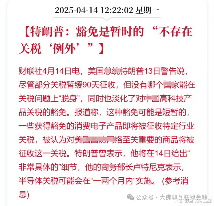 4月11日,美国宣布对智能手机、电脑、芯片等电子产品豁免对等关税。