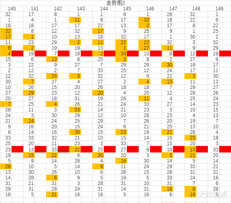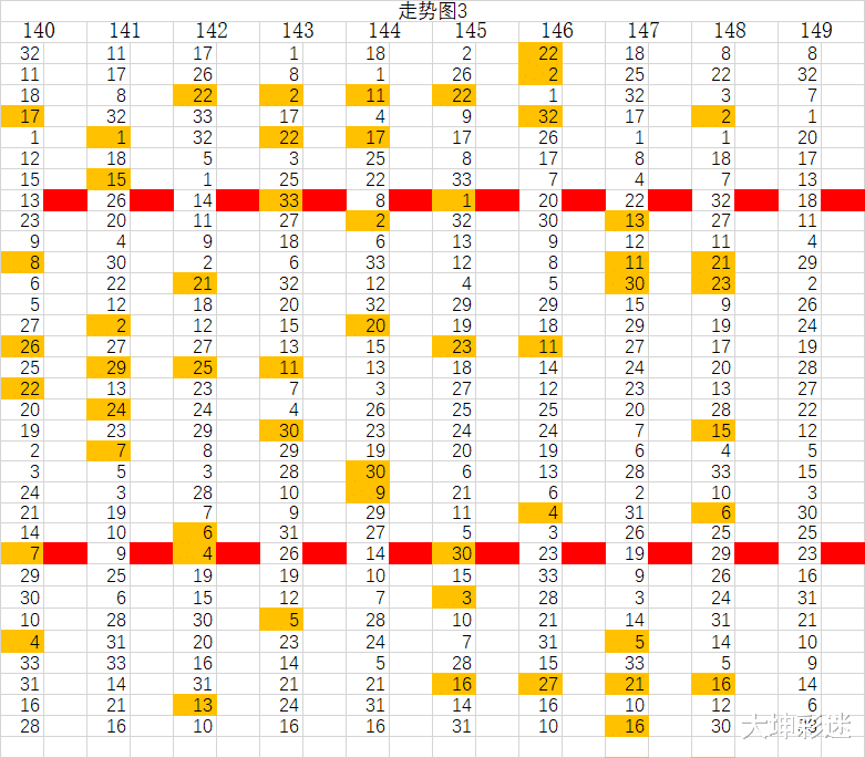 根据前面几期橘黄色开奖号相连行成的趋势进行判断, 3期以上基本可以判定为成熟趋势,可以多看几期,几条线就明白了。如果前面橘黄色开奖号码之间所间隔的格子为2格,那下期我们寻找号码的范围一般会从间隔格子1个空格,来挑选下期出号的号码。如果间隔的是3-4个格子,那么这期最好2个格子左右进行号码框选。