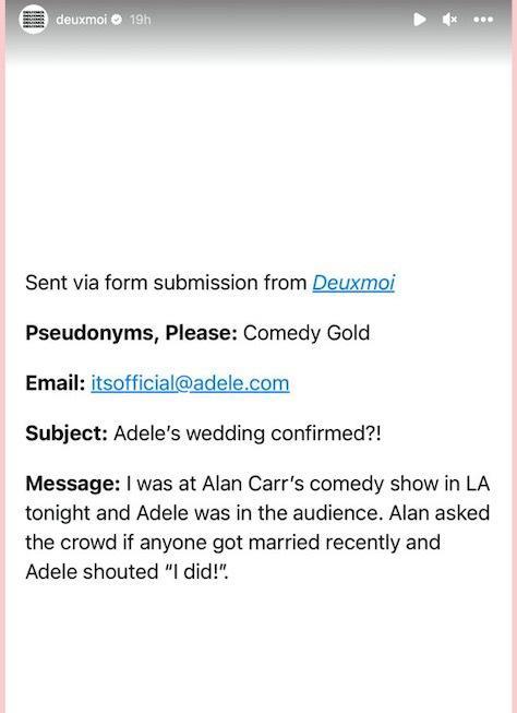许多阿黛尔结婚的传言,如今终于被可靠消息来源证实——