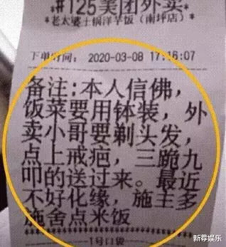 外卖订单接到这种单子应该怎么处理最合适?现在的人点个外卖都那么穷讲究了吗?信佛的让快递小哥剃头,还得三跪九叩的送过去!吃个外卖还把自己当成如来佛了?哈哈!要是有人信邪的,是不是应该让外卖小哥带着三根香直接烧给那人吃得了?