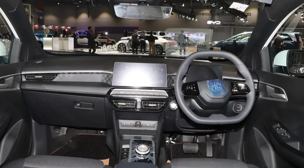 新车的前脸造型风格和MG 5一致,大灯使用了三角形的轮廓,机盖两侧的筋线和前脸上部隆起的前鼻造型相呼应,看上去很有视觉冲击力。大嘴式的中网使用了黑色的格栅,前杠两侧和底部使用了突出的扰流铲设计。