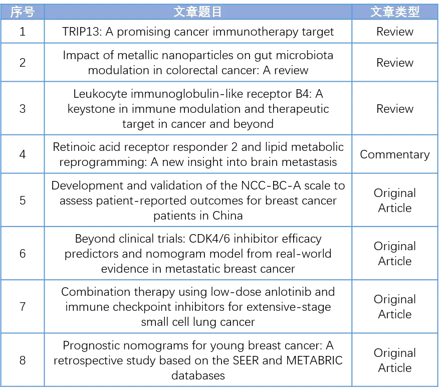 ▸Cancer Innovation是一本聚焦于肿瘤医学前沿的英文期刊,致力于促进医学与工学、信息学、药学、生物学等多学科交叉,引导肿瘤专业与心血管、呼吸、神经、生殖等跨专业融合。