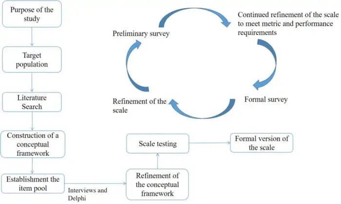 A comprehensive literature search was performed in the PubMed, Embase, Wanfang, and CNKI databases to extract dimensions and items for a potential patient-reported outcome scale. The Delphi method was used to modify, add, subtract, and adjust the language of items until the experts reached a consensus on the first draft. This draft was further refined using a cognitive test and a presurvey. The optimized scale was used for a formal survey, and the items were further analyzed and screened using metrics such as the coefficient of variation, correlation coefficient, internal item consistency, factor analysis, reliability, and validity.