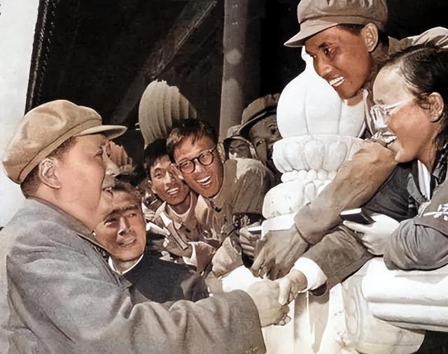 当时发生了个小意外:主席台是临时用木板搭的,毛主席一上去,台下的人就沸腾了。大家一边喊“毛主席万岁”,一边使劲往前挤,都想冲上台去和他握手,场面特别热闹。