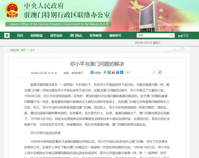 邓公与澳门问题的解决 新华社澳门,2014年11月17日