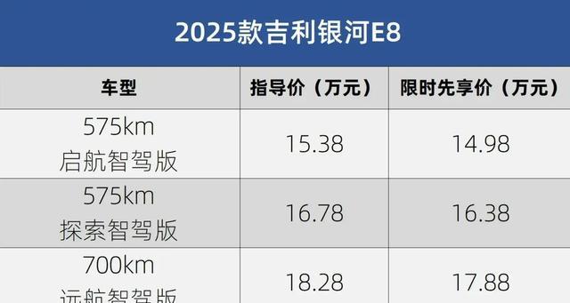 2025款吉利银河E8的上市引起了不少争论。有人说它是“价格屠夫”,有人更是对它的智能化表现感到惊艳。作为一款在20万元以内的B级纯电轿车,吉利银河E8究竟是什么样的存在?它可以在激烈竞争的市场中大放异彩,还是不过是昙花一现?今天,我们就来深入分析这款车的各个方面,看看它的真实价值如何。
