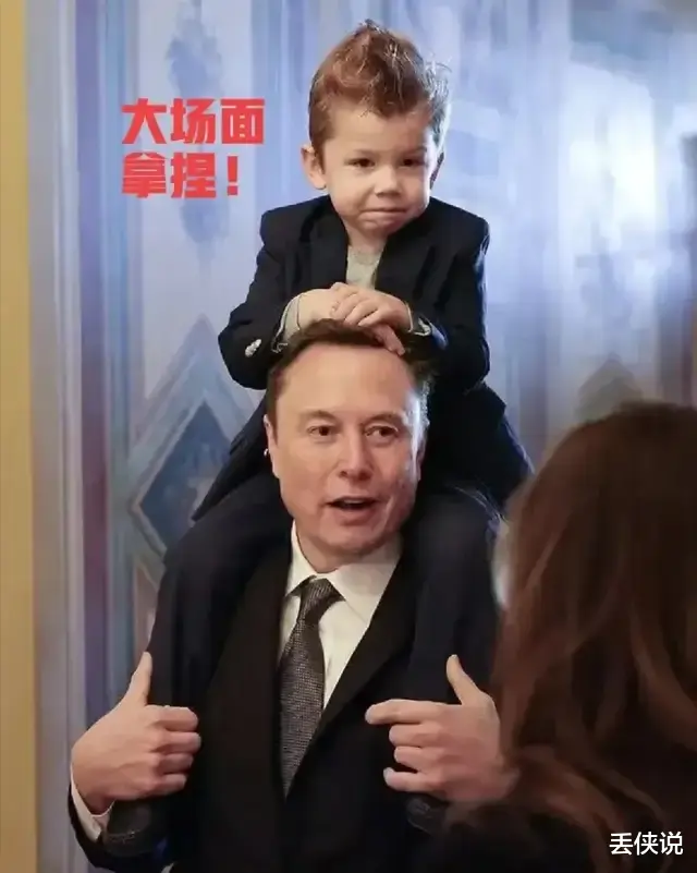 就在马斯克紧张得结巴时,他的小儿子X娃却毫不怯场。这位年幼的“小明星”跟着老爸一起上台,全程蹦蹦跳跳,时而对着台下观众挥手,时而好奇地东张西望,甚至还时不时地拉拉马斯克的衣角,仿佛在提醒老爸别紧张。