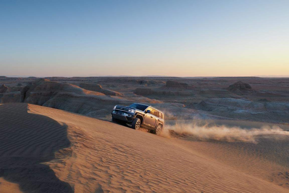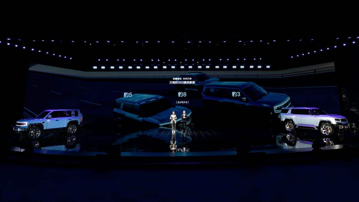 在方程豹本次的发布会上更为亮眼的则是豹8车型的亮相,SUPER 8展示了方程豹对于硬派SUV更极致的探索,更为宽大的车身设计以及车身底盘上下分体式连接的设计,体现出更稳固的车身姿态。我们也期待豹8车型在技术方面带来的专业越野体验。