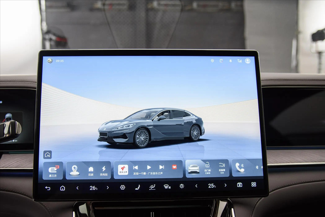 17.3英寸的车机内置腾势找联发科定制的芯片(BYD9000),采用4nm制程、并支持5G网络,这个芯片在CPU的算力上超过了高通8295,并支持11屏互联,在人车交互上,支持了全场景语音,无论是驾驶员还是前后排乘客,动动嘴就可以操控车上的功能,依靠这个硬件它也可以实现全车的无麦K歌,娱乐性更强。