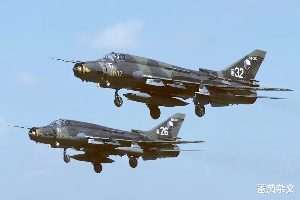 苏22不是苏17的改进型号,是出口第三世界的简化型号,还有一款苏20是给华约盟国用的,相对简化程度不多,苏17在阿富汗高原由于推力不足,很难满载起飞,这是最大问题,机头局限,加上电子落后,很难说是成功的机型!