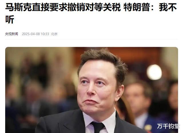 从美媒那边得到的消息啊,就是在特朗普说要对中国商品再多收50%关税之前,马斯克其实就已经跳出来反对了特朗普这个主意。