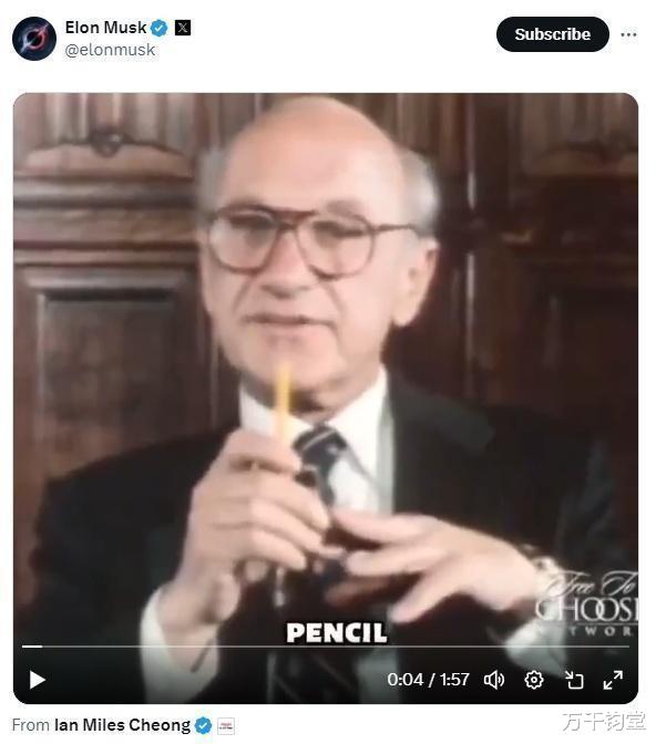 那时候,马斯克依旧没放弃,他又在社交网站上发了一段已故经济学家米尔顿·弗里德曼的视频。他的目的很简单,就是想让大伙儿明白国际贸易合作有多重要。