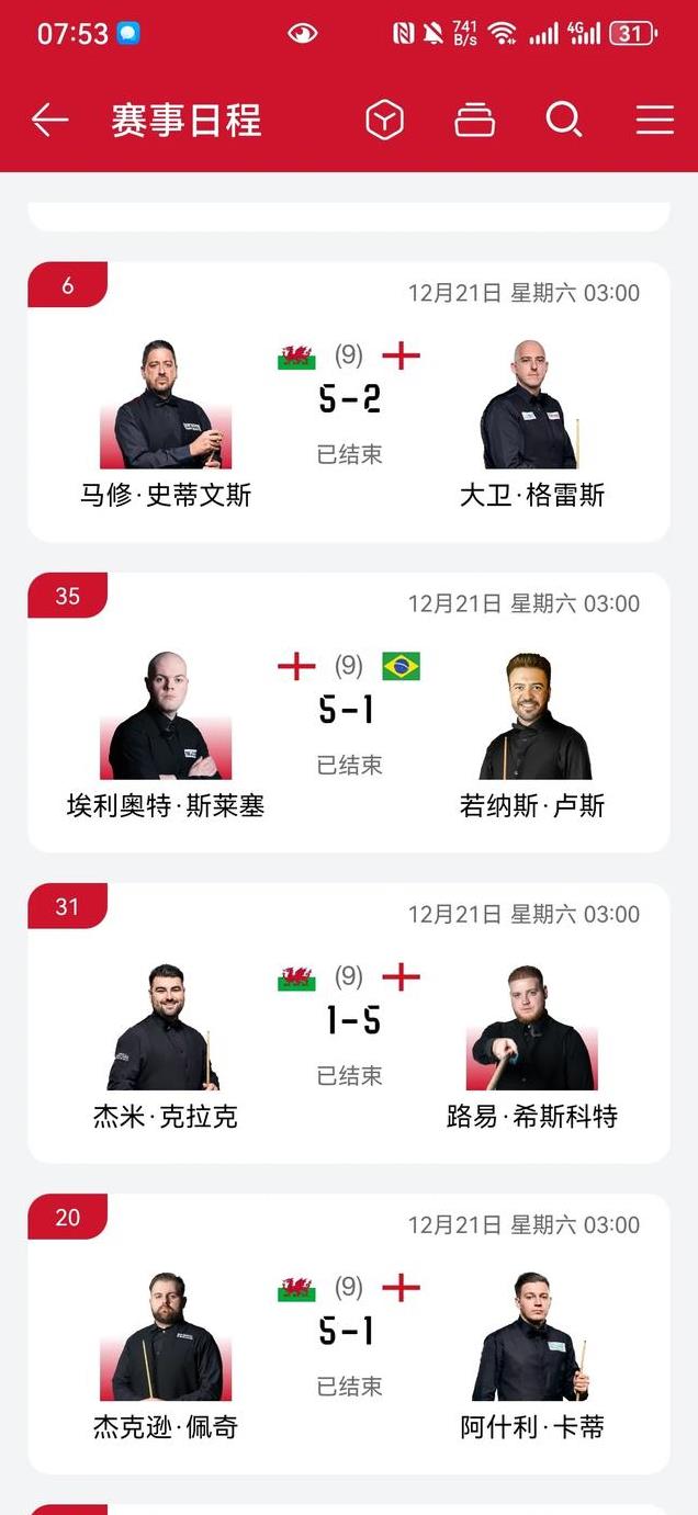 2024到2025赛季的斯诺克职业联赛继续进行在北京时间的2024年的12月21日,斯诺克世界公开赛的资格赛全面打响。在本次世界公开赛资格赛的首日比赛当中,中国斯诺克球员也是喜忧参半。中国斯诺克球员当中率先突围的几名球员分别是吴宜泽,袁思俊和龙泽煌而斯佳辉在本次世界公开赛也是错失了回国的机会爆冷出局。另外像马奎尔,宾汉姆两位六届排名赛冠军得主也是无缘晋级到世界公开赛的正赛,巩晨智同样是错失参加世界公开赛的正赛。