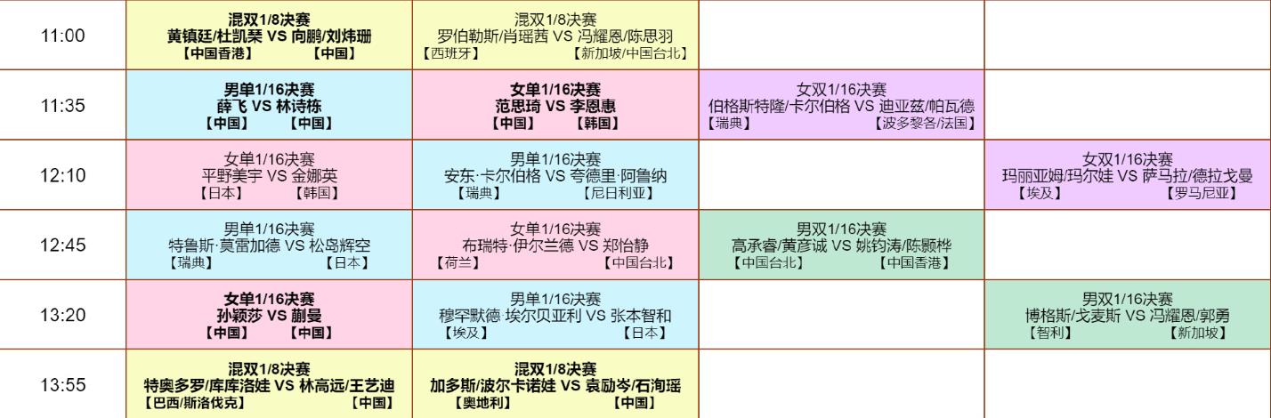 12点10分,平野美宇对阵金娜英,卡尔伯格对阵阿鲁纳。