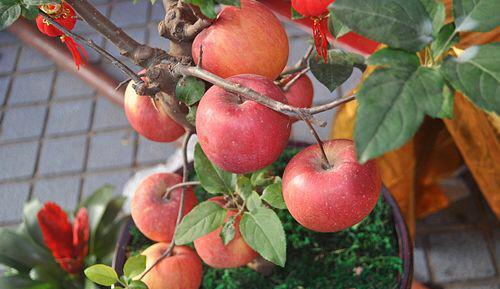 在花鸟市场购买时,我们应选择矮小且适合盆栽的苹果树苗。