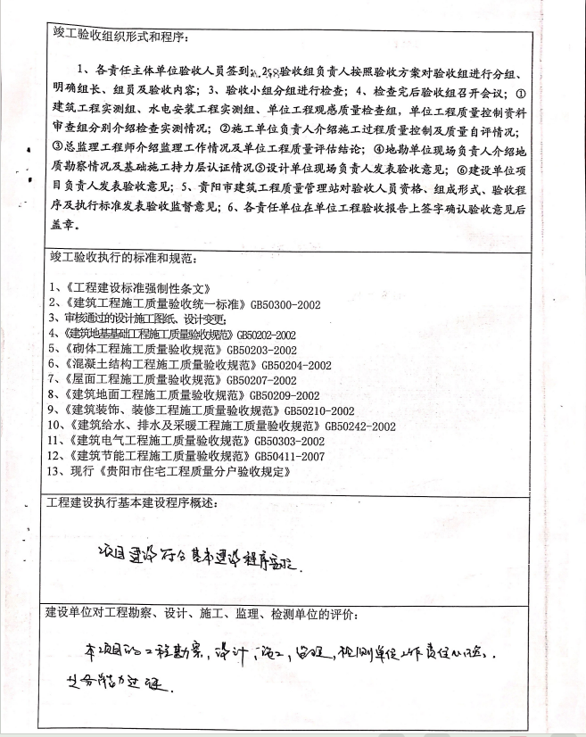 在当事人提供给的幸福里小区经济适用房32份《建筑工程竣工验收报告》中,笔者发现了一个有趣的现象,那就是很多验收报告中,验收人的字都写得很漂亮,也很有美感,不过,在落款中,没有出现验收人的签名,也没有验收单位的公章。