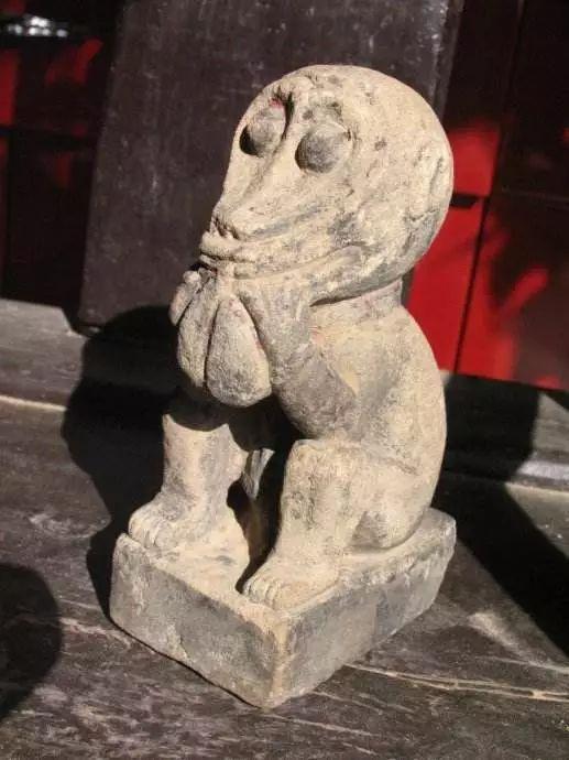 绥德工匠们大多没见过真狮子,雕刻狮子一般都以石取势,见方就圆,凭借神咒一样的口决“十斤狮子九斤头,两只眼睛一张口”,抓住狮子鬣毛凸眼,阔口獠牙,硕大的头颅,坚实的前驱和机灵的身干特点,靠信仰的虔诚,想象的丰富,雕技的神工,让冰冷的石头化生出形态各异,夸张多变,似狮非狮,神似貌离,神形兼备的圣灵。