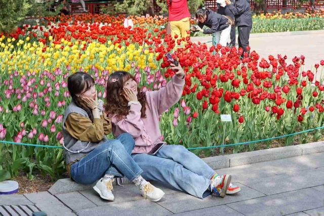 北京中山公园郁金香迎来最佳观赏期,吸引众多市民游客前来打卡、拍照留影。