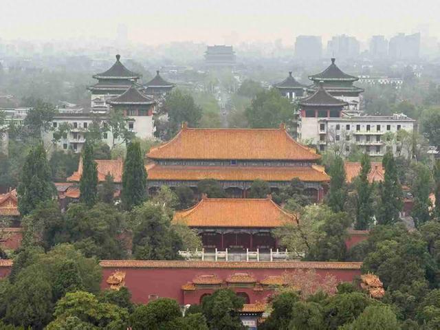 雨后景山,薄雾笼罩,仙境渺渺,牡丹水灵,人群攒动,好不热闹。