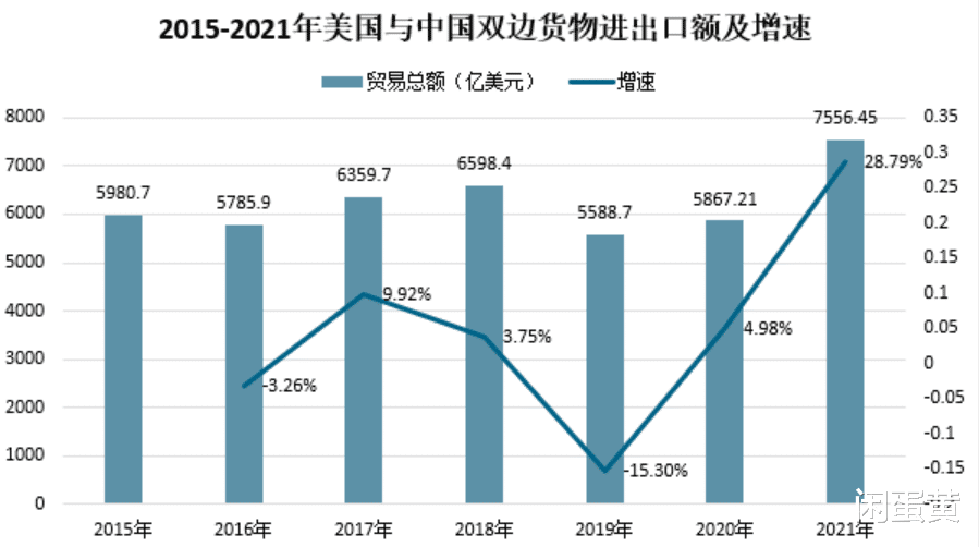身体是最诚实的。海关数据显示,2020年中美双边贸易额为5867.21亿美元。2021年中美贸易额为7556.45亿美元,同比增长28.79%。这种新高还是在美国制裁中国,封锁高技术产品出口的情况下完成的。