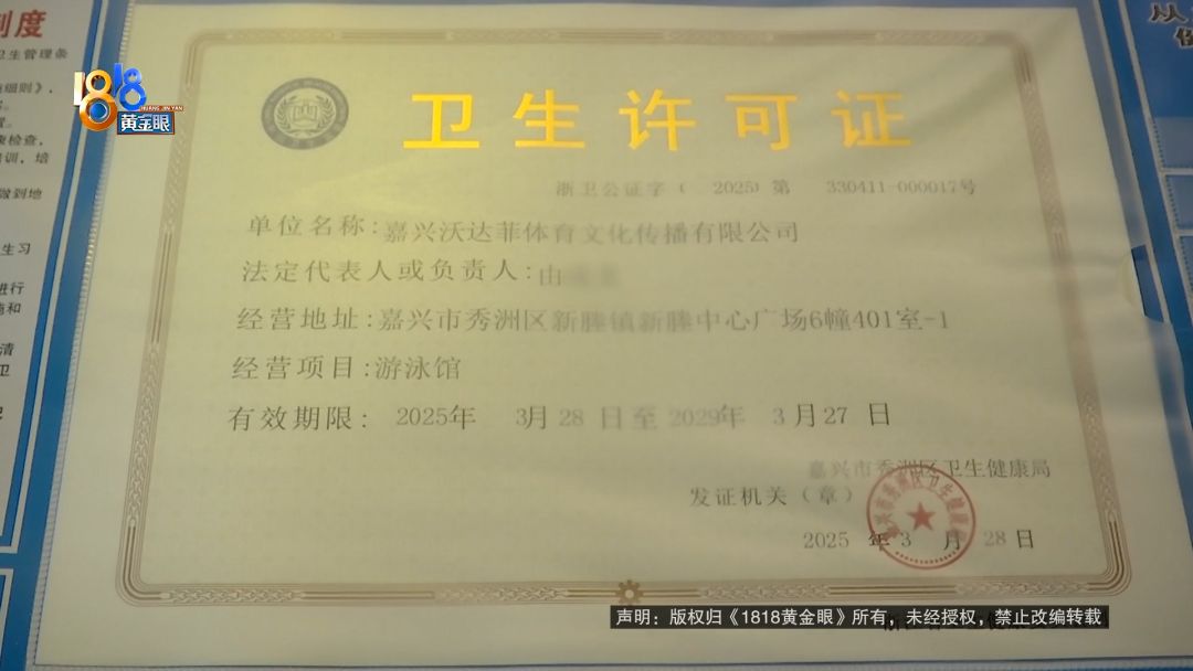 嘉兴市秀洲区教育体育局体育科 傅科长:我们之前跟卫健那边就是到场地上催促他尽快地办理这个,一个是卫生许可证,一个就是我刚刚说的这个高危证,据说是卫生许可证已经办出来了。如果消费者希望退款、退卡,那我们还是要协调这个公司以及镇里面的相关的部门要办理这个工作。