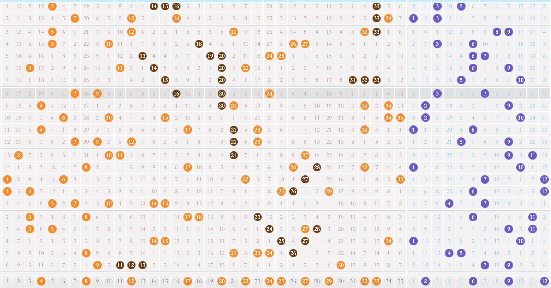 大乐透24084期前区红球出球奇偶比考虑3:2或者继续2:3走势,红球出球三区比考虑1:1:3或1:2:2走势,本期红球重号考虑12有可能不出,冷号考虑33,胆码考虑17或者29,