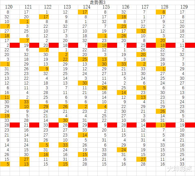 根据前面几期橘黄色开奖号相连行成的趋势进行判断, 3期以上基本可以判定为成熟趋势,可以多看几期,几条线就明白了。如果前面橘黄色开奖号码之间所间隔的格子为2格,那下期我们寻找号码的范围一般会从间隔格子1个空格,来挑选下期出号的号码。如果间隔的是3-4个格子,那么这期最好2个格子左右进行号码框选。
