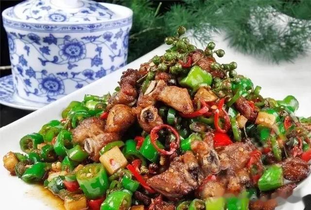 制作:1.将排骨斩成丁,二荆条辣椒和小米椒切成小颗,均备用。2.往净锅里放入菜籽油和猪油(混合油)烧热,下排骨丁爆干水分后,才加入豆瓣、泡椒和青花椒一起炒香,等到把小米椒、二荆条辣椒和子姜粒下锅翻炒匀以后,陆续调入酱油、花椒油和香油,翻匀便起锅装盘。