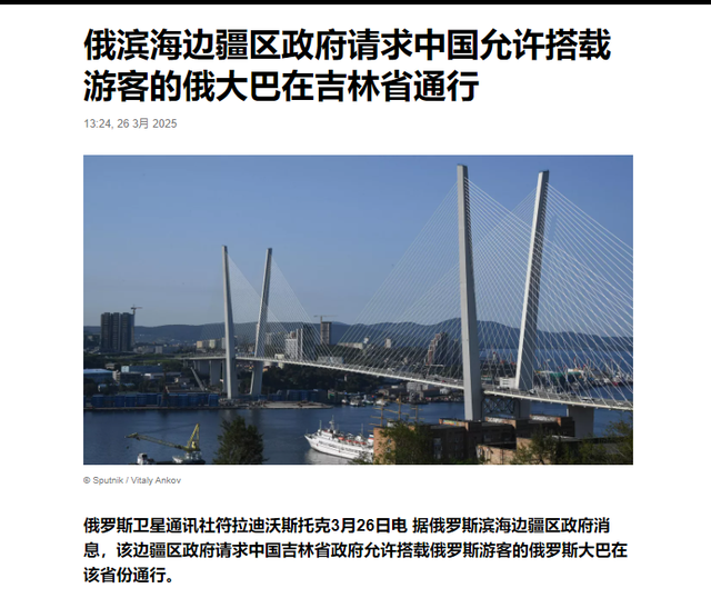 俄罗斯卫星通讯社2025年3月26日《俄滨海边疆区政府请求中国允许搭载游客的俄大巴在吉林省通行》报道