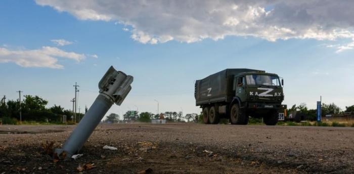(一辆俄军军车在前线穿行)