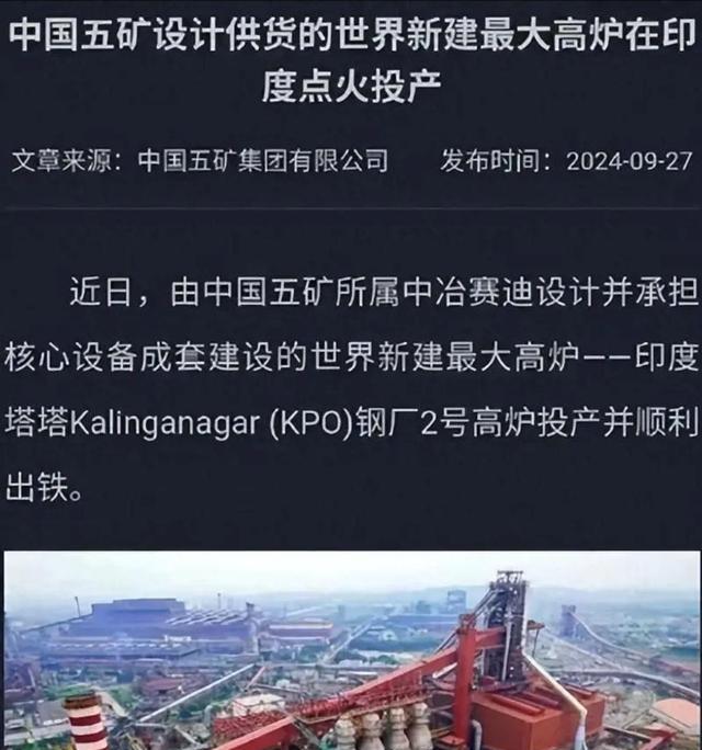 说句大实话,印度这波操作有点“端起碗吃饭,放下碗骂娘”的味道,2024年中国帮塔塔集团建了全球最大高炉,年产437.5万吨铁水,直接拉高印度500万吨粗钢产能,这不只是工程牛掰,更是中国技术实力的招牌。
