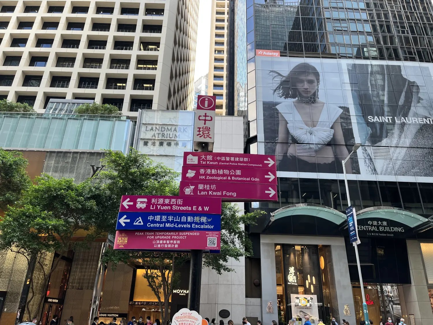 中环整体来说比较繁荣,高楼大厦也比较多,马路也比较宽敞,之前听过一首《皇后大道东》的歌,今天也走在了皇后大道上,怎么说呢,我确实觉得中环也是我印象中的香港。这里很多很多的店簇拥在一起,对于漫无目的的我们来说,确实眼花缭乱。