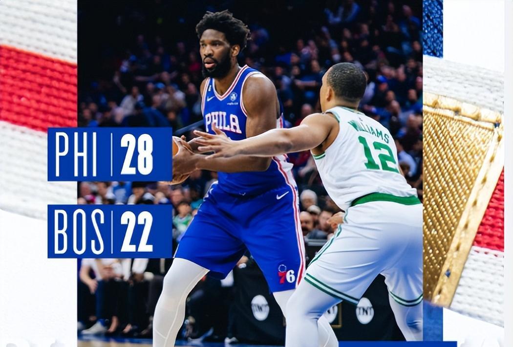 面对恩比德这个内线绝对强点,凯尔特人确实找不到能够对位的球员,只能看着他内突外投,不断去制造有效的杀伤。首节他便拿到18分和7个篮板的数据,一己之力帮助球队拿到领先。