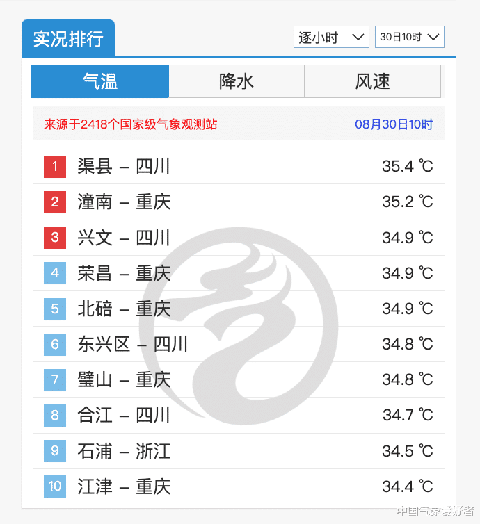 目前,四川盆地的高温天气依然在继续。截止今天16时,四川合江的气温依然达到了40度。虽然重庆多地因为天空云量增多,最高气温有所下降,但依然大范围地处在38到39度的高温线上。更夸张的是,很多地方一过上午10点就已经达到了高温线,感觉到酷热难耐。