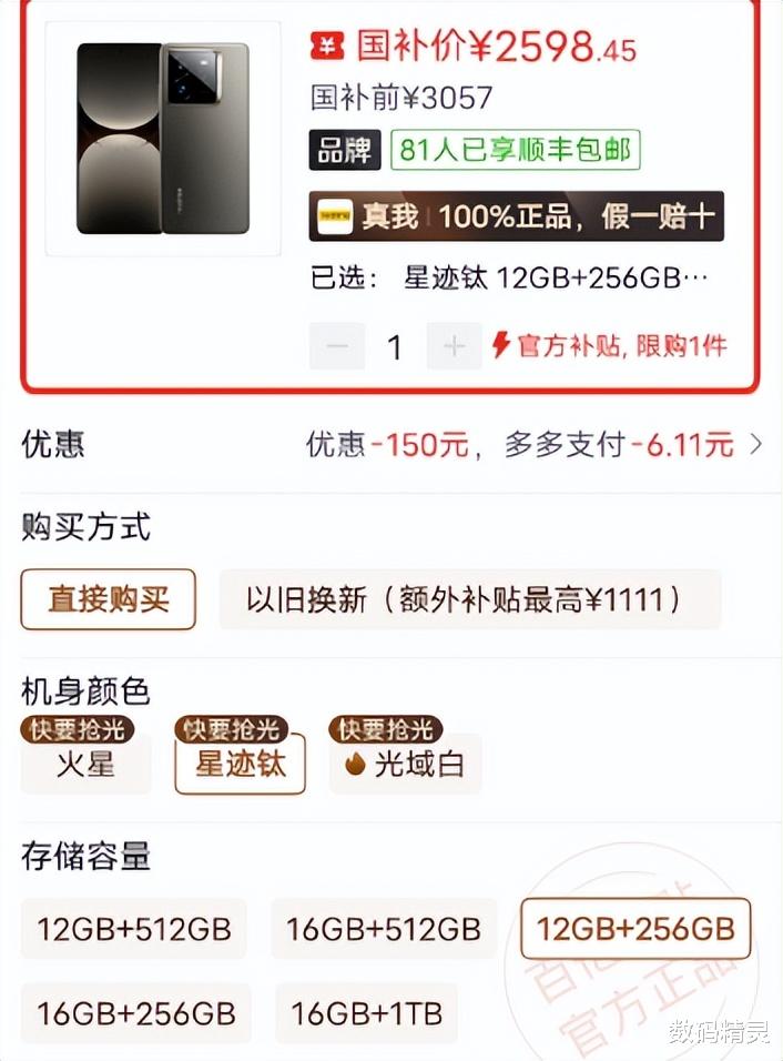 首先是大家最关心的售价,目前在JD自营店国补价为2800元,对于一部已经开售5个多月的手机来说,这个降价力度算不上高,但第三方其实还能大幅再进一步,2598元就能买到,这个售价就相当给力了,虽然目前2300元左右也能买到骁龙8至尊版手机,但功能配置方面的较大差距却足以弥补差价,芯片就不用说了,大家都一样。