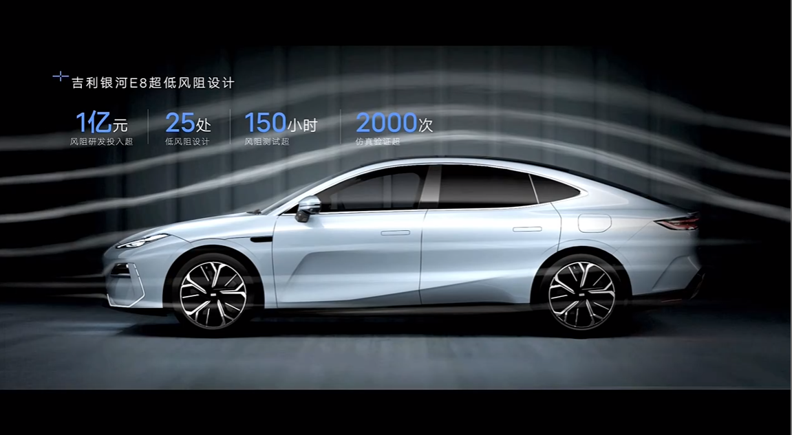 在尺寸上,新车的长宽高分别为5010/1920/1465mm,轴距达到2925mm,宽敞的内部空间与动感的外型设计形成了完美的结合。高效的主动进气格栅、低风阻轮辋等独到之处使得银河E8拥有仅为0.199Cd的风阻系数,成为了空气动力学设计的典范。