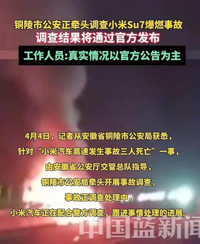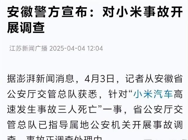 [1].官方媒体江苏新闻广播《安徽警方宣布:对小米事故开展调查》2025.04.04