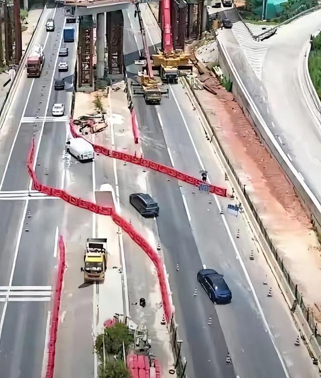 有个龙门架,上面更是十分醒目的给司机提示到,前方施工的字样。