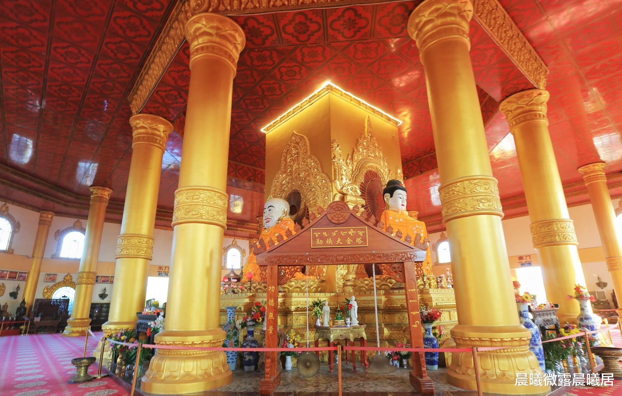 走进大金塔的内部,首先映入眼帘的是宽敞的空心大厅,这里供奉着释迦牟尼佛、药师佛、观音菩萨等诸多佛像,庄严肃穆。墙壁上绘满了精美的壁画,栩栩如生,讲述着古老的佛教故事,令人叹为观止。还有那精雕细琢的雕塑,每一处细节都体现了佛教艺术的博大精深。登上塔顶,视野更加开阔,芒市的美景尽收眼底,让人心旷神怡。